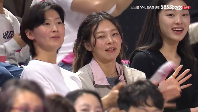 Song Hae-na, Cha Soo-min, and Kim Seol-hee also showed their fervent support for Heungkuk Life Insurance's victory in the stands that day. Their appearances were captured several times on TV broadcast screens.