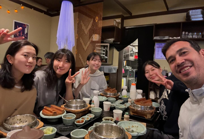 ▲ 'Friendly meal' Women's volleyball team coach Morales (far right) and Hyundai Construction team players (2023.10.22) © Coach Morales' Instagram
