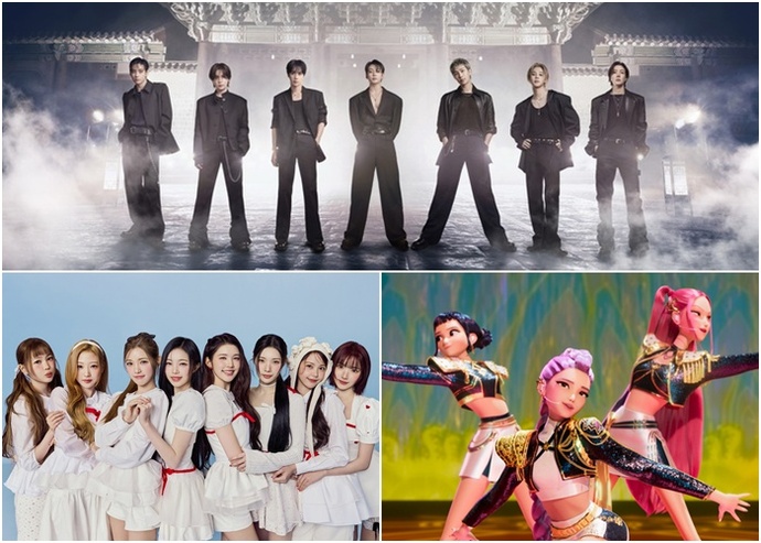 ![]() ▲ 방탄소년단(BTS)·하츠투하츠·‘케데헌’ 헌트릭스 <사진출처=빅히트뮤직, SM엔터테인먼트, 넷플릭스> © |