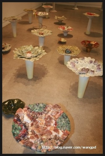 Even though Shim Young-cheol's Monumental Garden for the Environment has a different external image, the essential message is the same. In the exhibition hall, there are about 20 magnificent granite colonnades with a diameter of 40 cm and a height of 120 to 180 cm. Christmas wreaths decorated with colorful neons hang above the pillars.