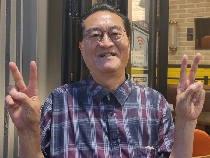 ![]() ▲ V자(승리)를 펼쳐 보인 필자. © 브레이크뉴스 |